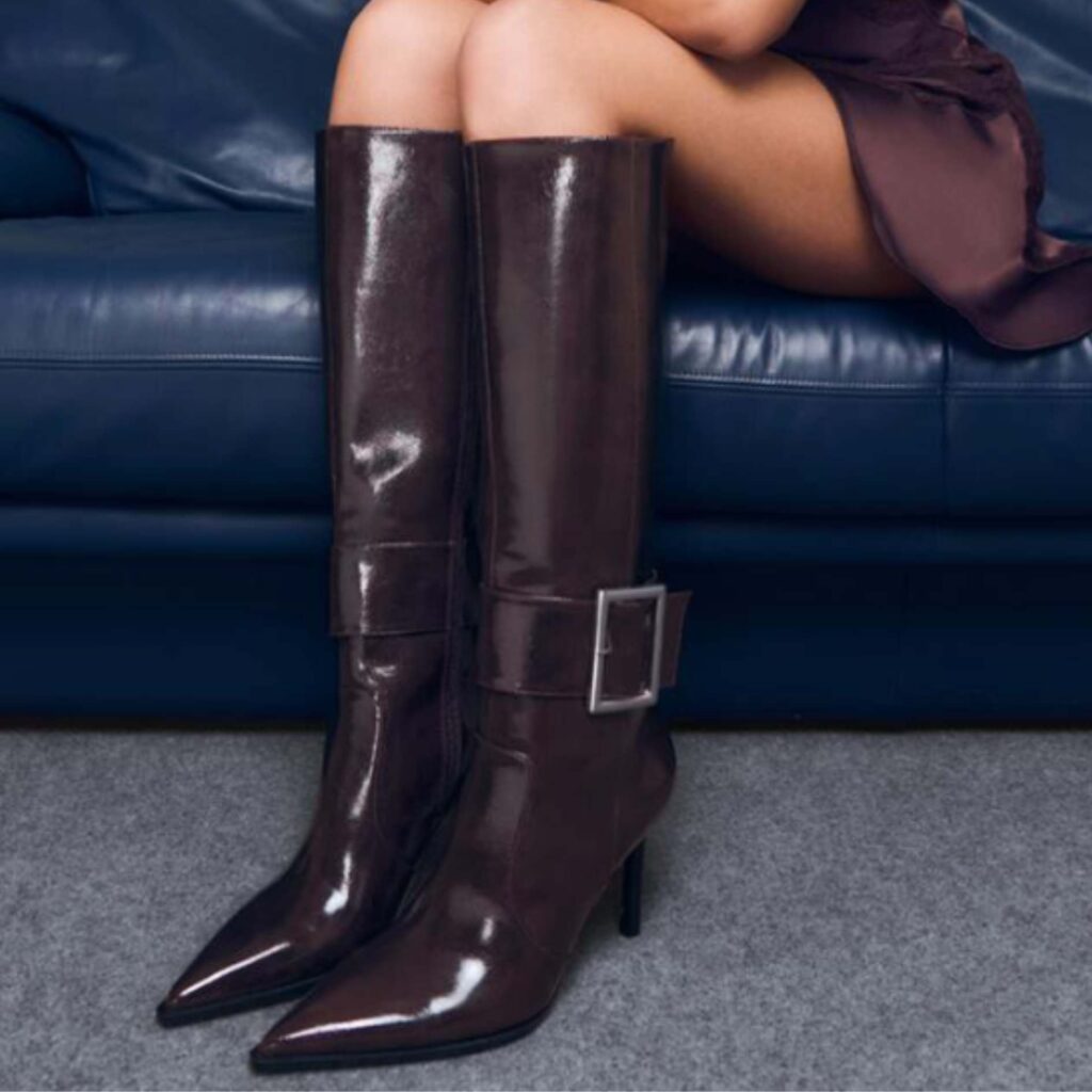 10. Zapatos destalonados y botas Los diseños destalonados siguen vigentes con puntas afiladas o cuadradas. Veremos tacones bajos y detalles en vinilo o pelo. Por su parte, las botas altas dominan en estilos mosquetero, motero y vaquero, destacando en tonos burdeos, blanco y negro.