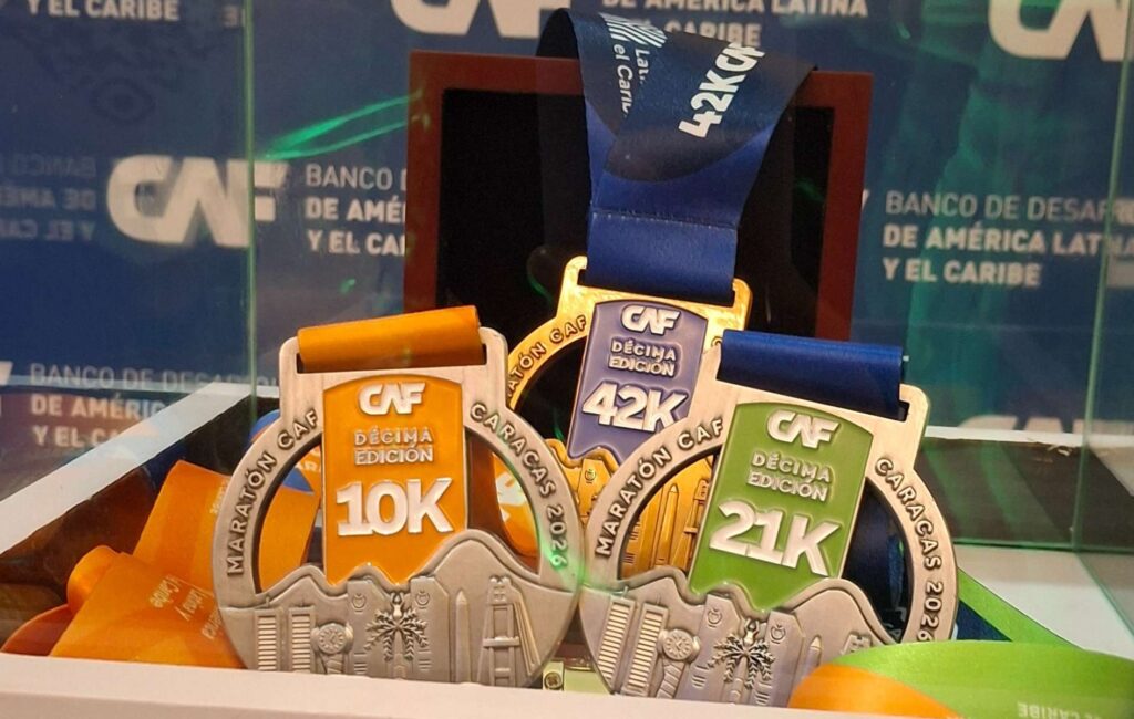 De igual forma, se presentó la medalla que recibirán aquellos corredores y maratonistas que crucen la meta. Esta fue seleccionada en 2025 en el concurso denominado “Diseña el Triunfo”, organizado por CAF. De más de 500 propuestas recibidas en aquella ocasión, destacó el diseño presentado por la venezolana radicada en Panamá, Johanna Rodríguez, que incluyó sitios y elementos icónicos de Caracas y otras ciudades.